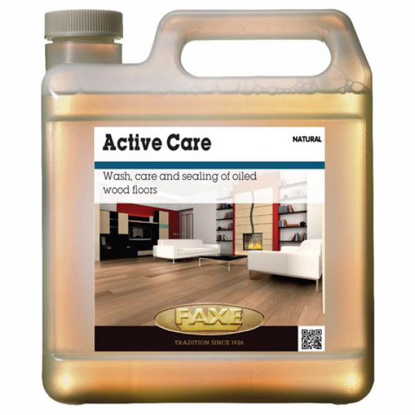 Faxe Active Care is a wood care cleaning product for oiled and other open pored, treated surfaces. It greatly enhances both colour and sheen. It is suitable for use on natural, oiled wooden floors, cork and linoleum, unglazed tiles and natural stone. Oil Care dries to a shine and forms a water-repellent, easy to clean protective film. Oil Care contains mild, surfactants (surface-active agents) and nurturing wax.