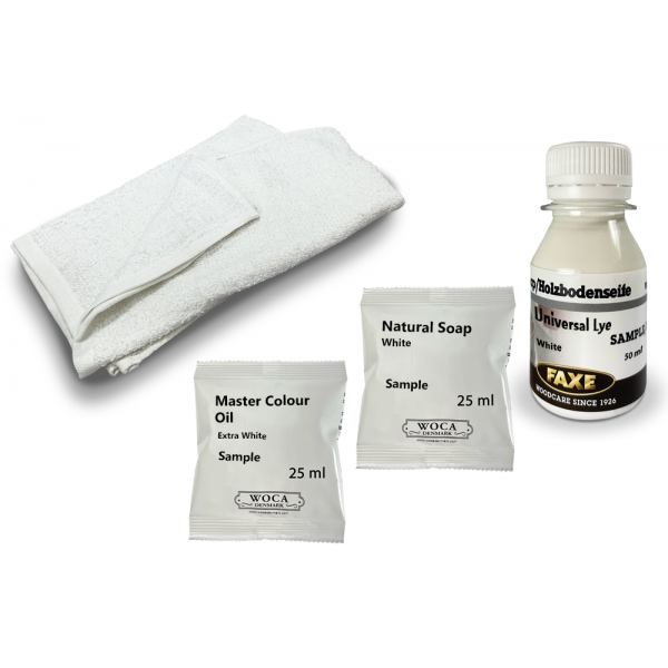 Samples: DC008 & DC085 Faxe Universal Lye & Woca Master Colour Oil 118 Extra White Gallery, How to, Video, Data, Architect  (DC)