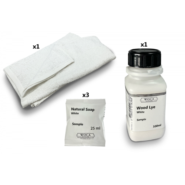 Samples DC010. Woca Wood Lye white & Woca White Soap, samples.